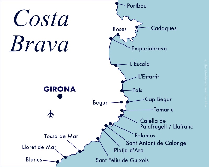 Brede zandstranden zijn zeldzaam. Eigenlijk zijn de enige twee de stranden in de enorme Golf van Roses en in de Golf van Pals. Maar juist aan de kleine, door pijnbomen omgeven baaien ontleent de streek zijn uitstraling. De stranden bestaan meestal uit grof zand, fijn grind of kiezels. Het water is er vaak buitengewoon helder, wat overigens geen garantie is voor ‘zuiver’ water.